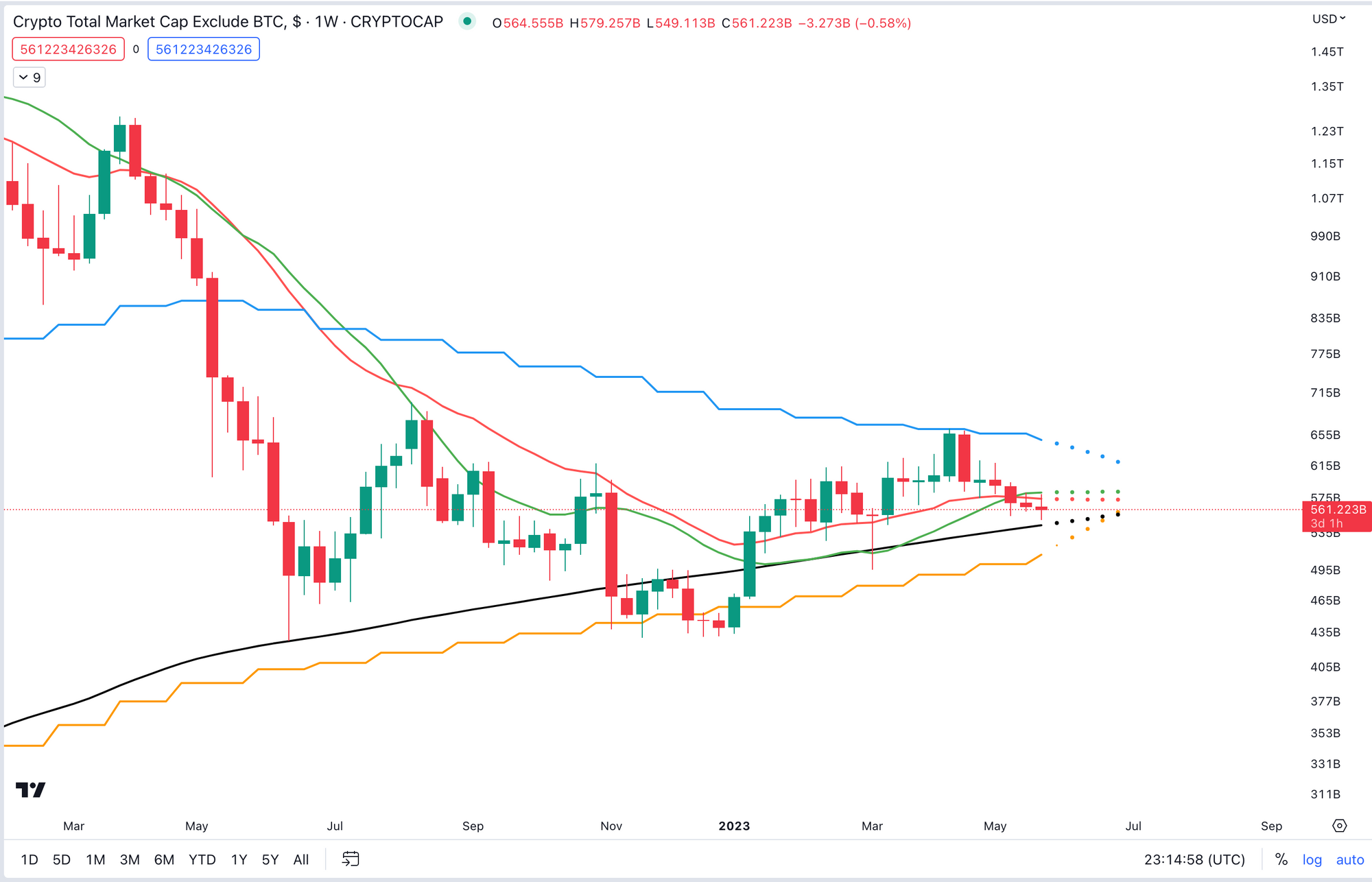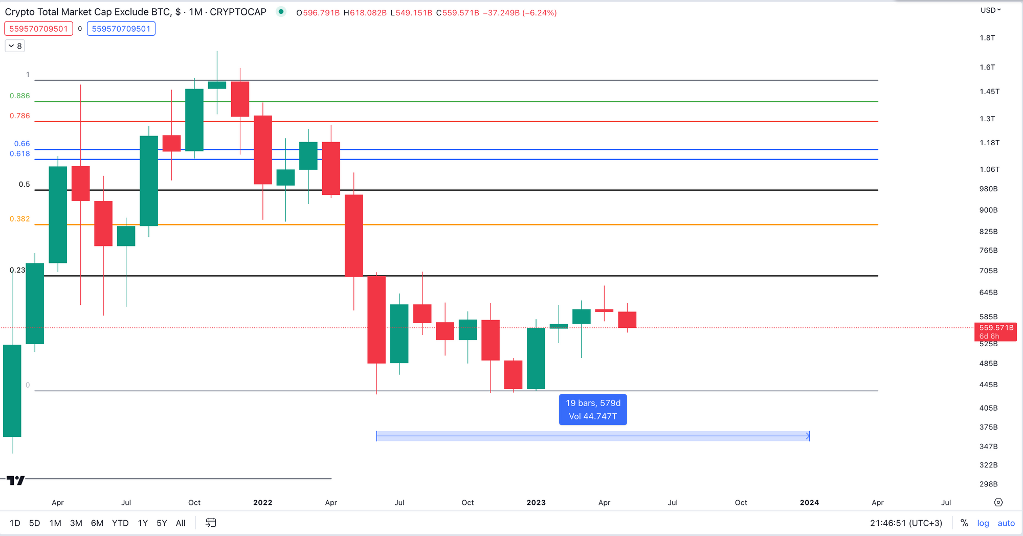 However, once the 0.236 level has been broken which stands at around $690 billion, we will start to see the altcoin market take off.