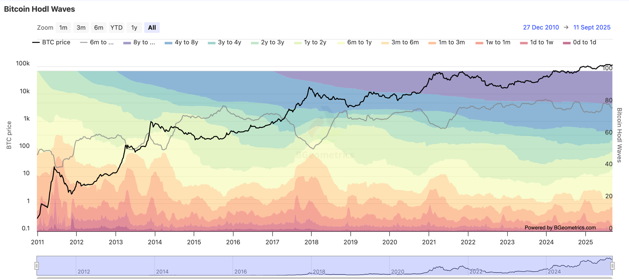 The 1-year view typically shows green surges during pushes to new highs, with red clusters concentrated around drawdowns. If the recent quarter leans green with shorter red streaks, it often fits a market that is pausing rather than breaking.