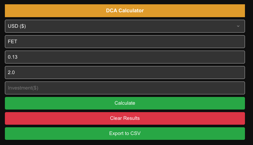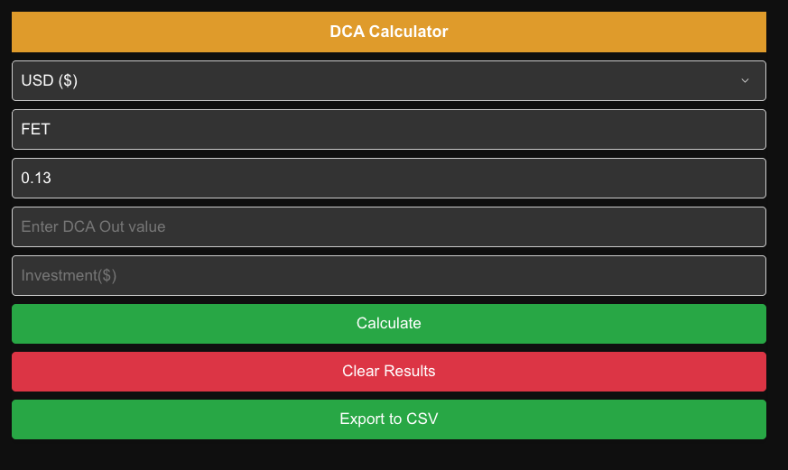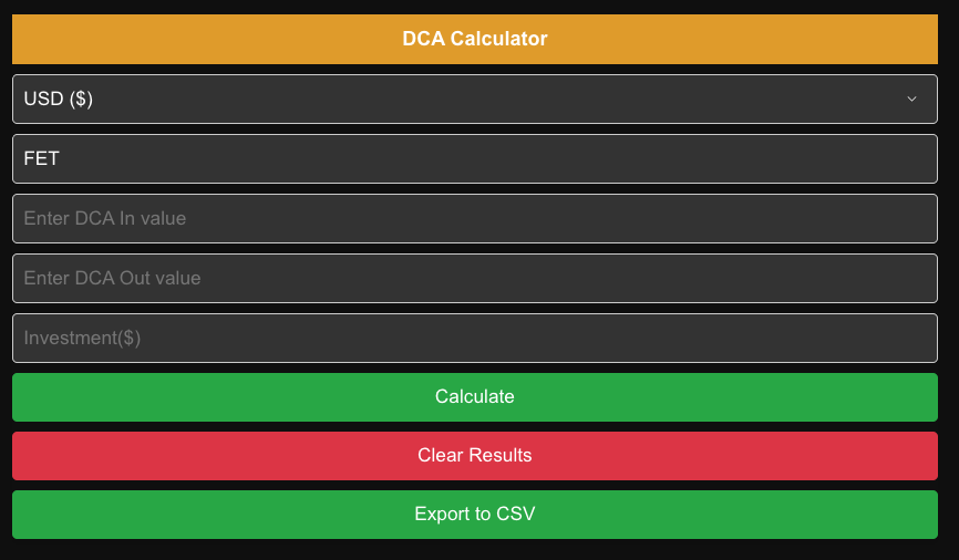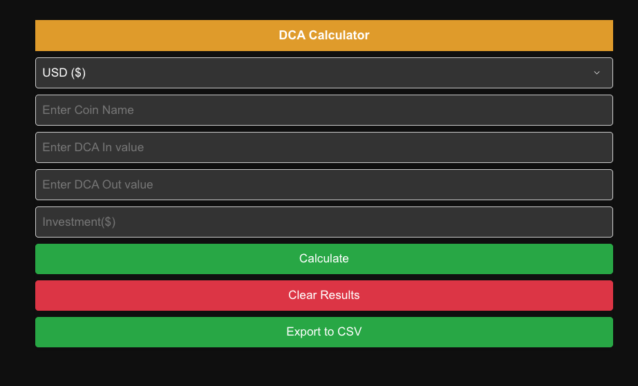 - The free DCA Calculator on The Markets Unplugged works with any coin and currency, lets you set multiple DCA in and DCA out levels, and exports results to CSV so you can journal and refine.