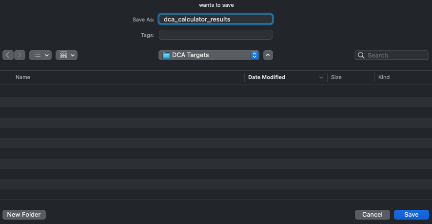 The Export To CSV and Clear Results buttons let you either save the current DCA plan for record keeping or wipe the slate clean and explore another scenario without confusion between runs.