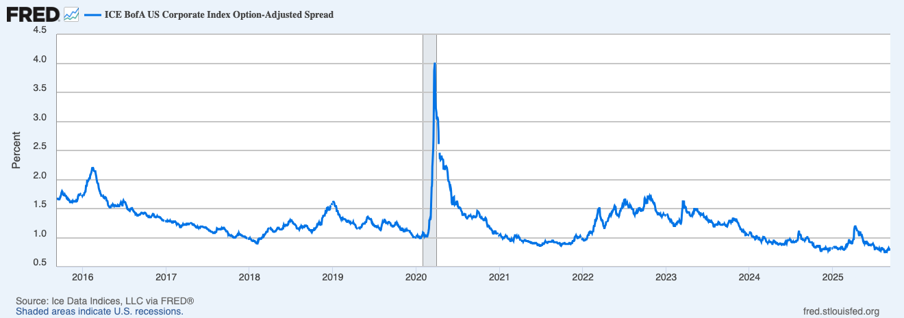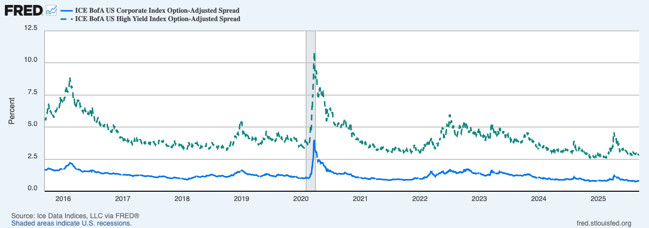 - IG OAS: Higher-quality corporates, steadier balance sheets, defaults are rarer, moves are smaller but informative.