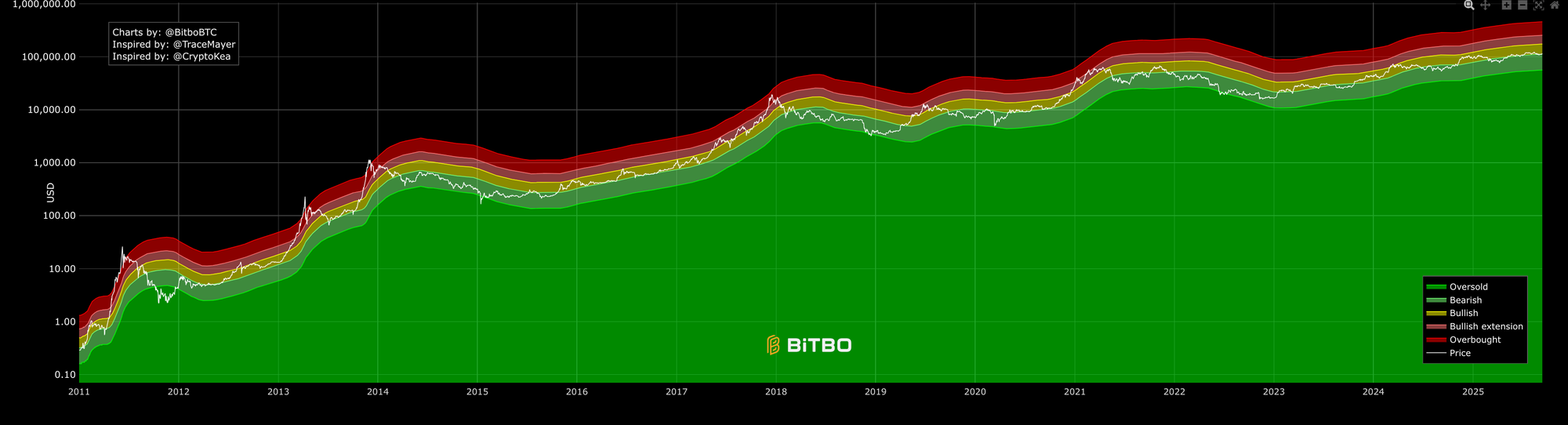 - Bearish zone (dark green to olive)… recovery phase… respect the 200-day slope and wait for reclaim signals before size.