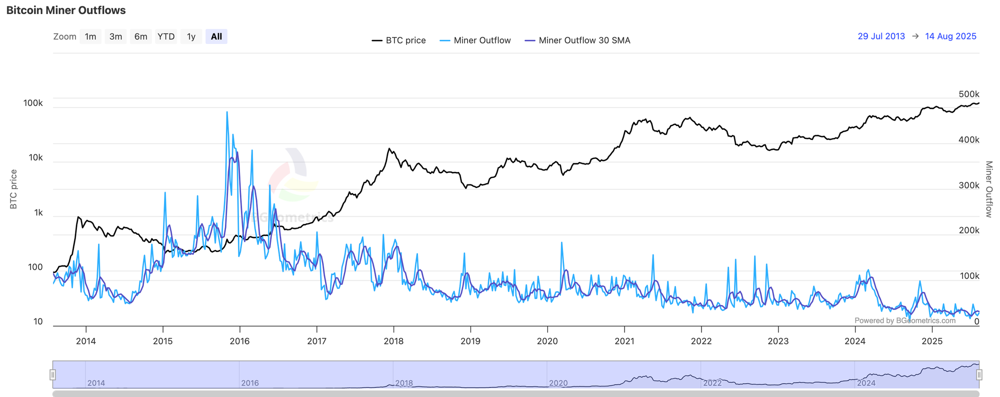 Bitcoin Miner Outflows: Source BGeometrics