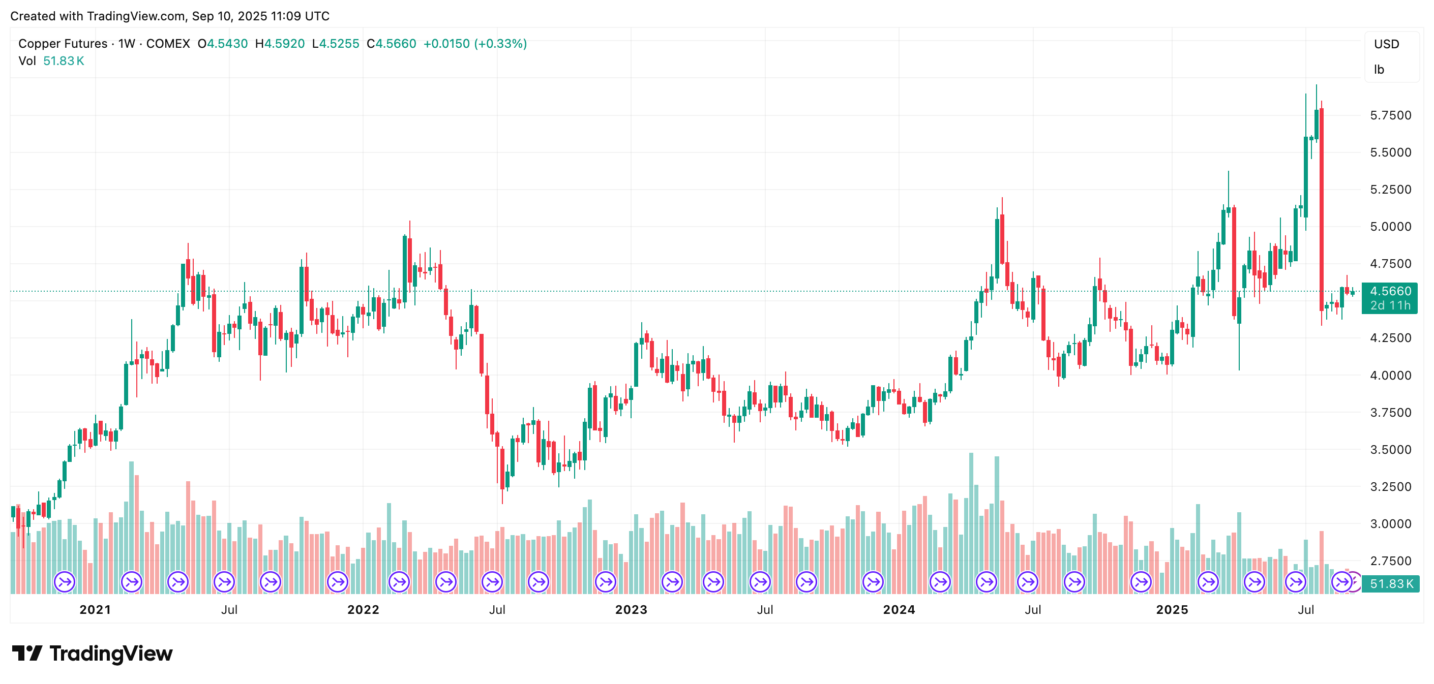 - Copper leans into manufacturing, capex, China construction and electrification.