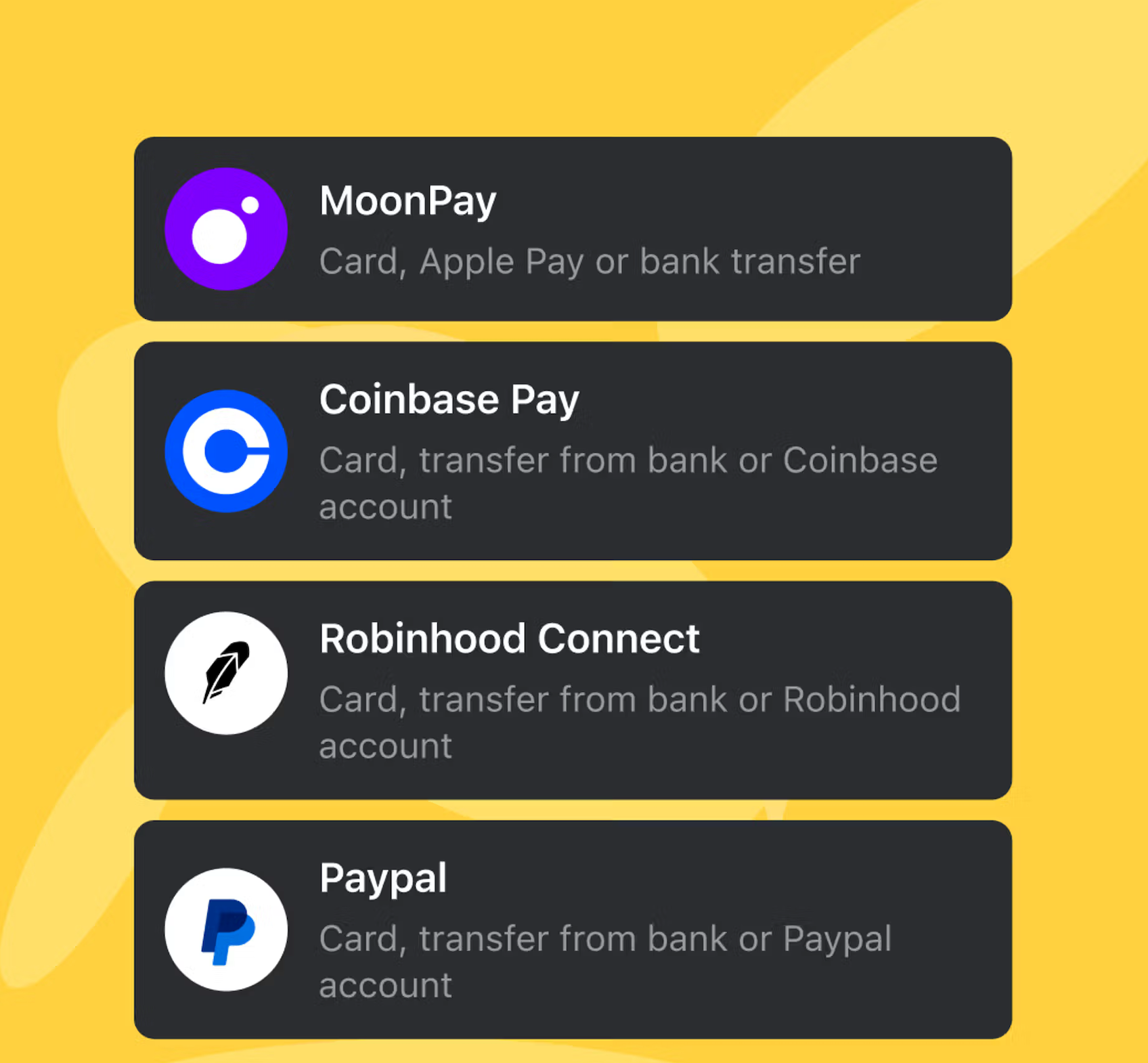 - Follow the provider flow and review fees before confirming