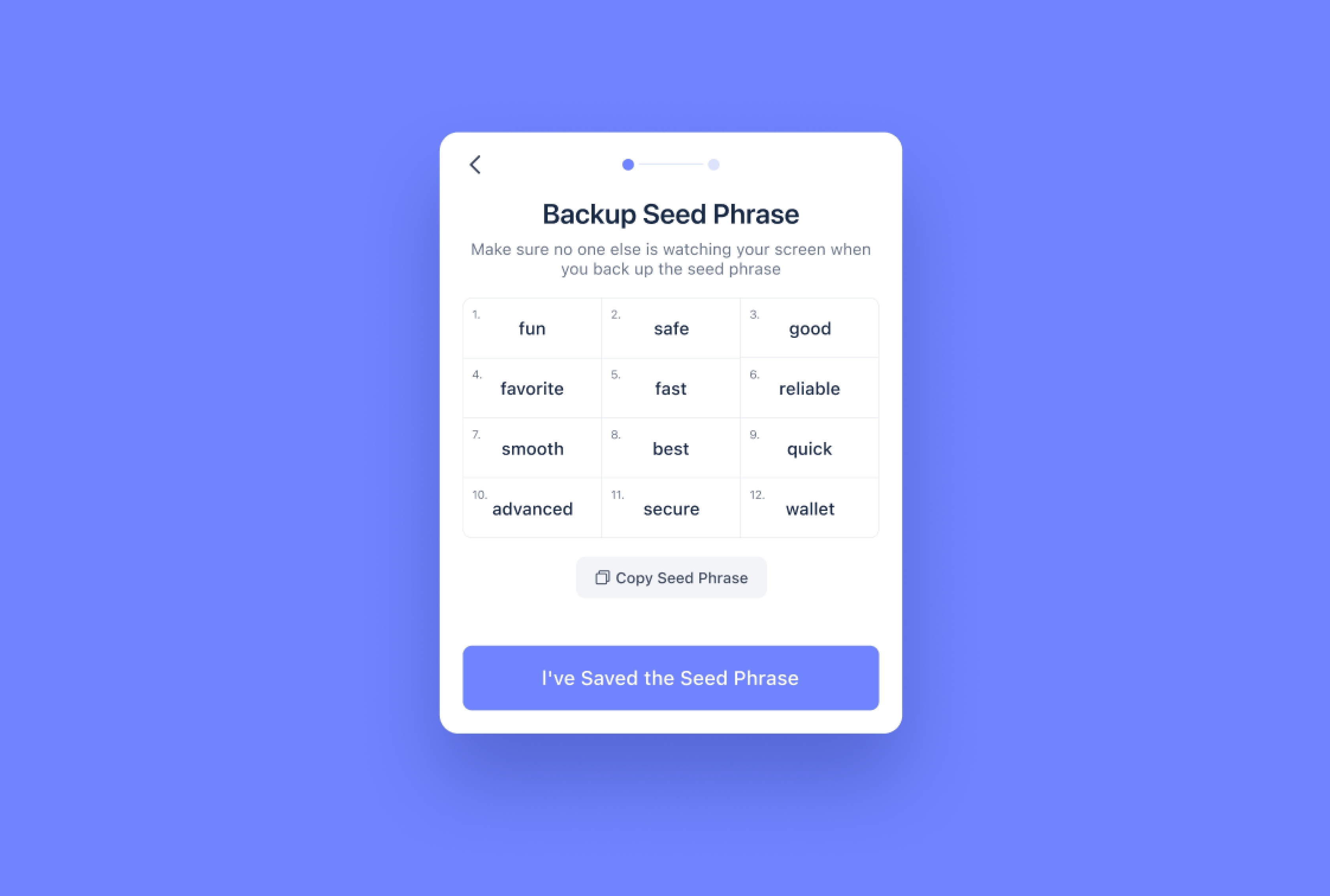 - Create a new wallet — generates a fresh seed phrase you control entirely