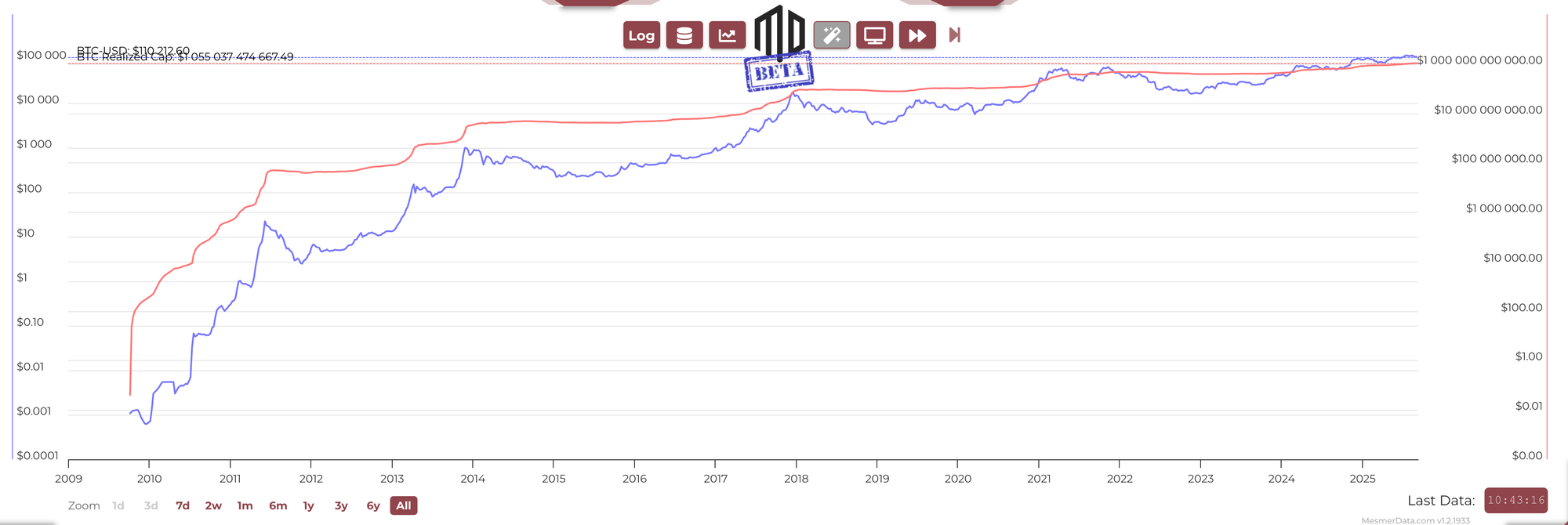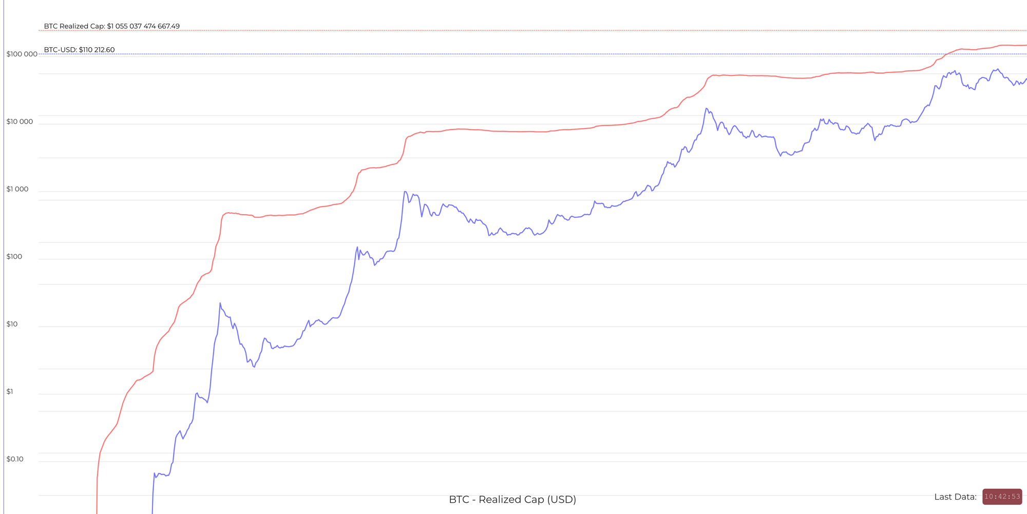 - Rising together = healthy advance: when price trends up while Realised Cap also climbs, demand is absorbing supply at higher cost basis.