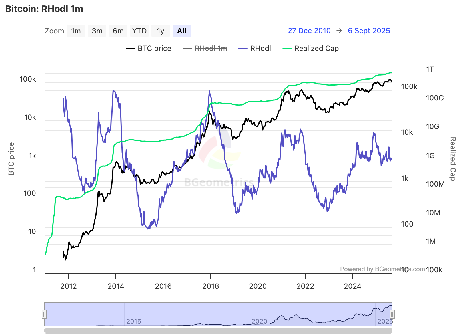 Bitcoin RHODL Ratio (monthly): Source BGeometrics