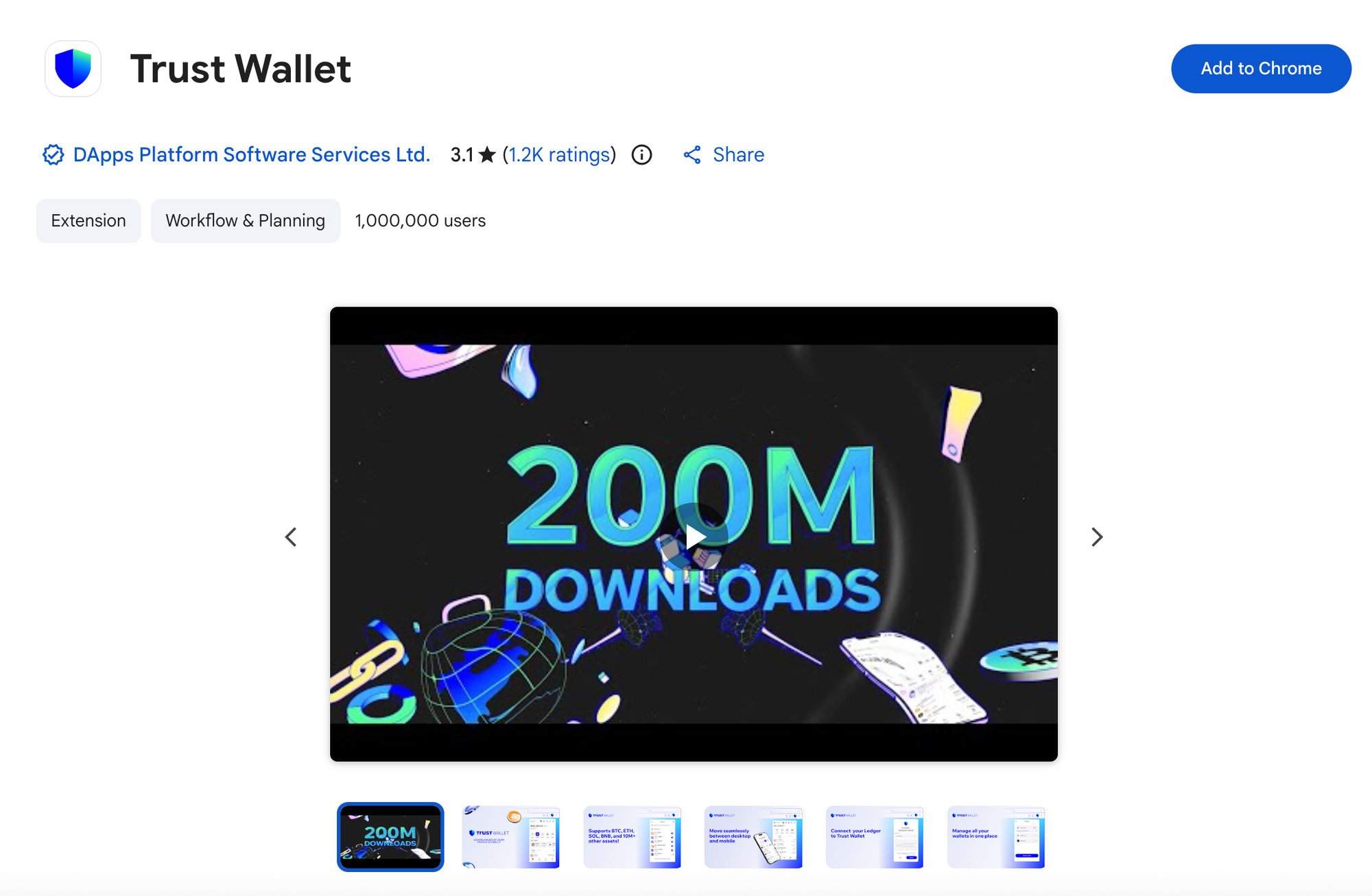 Trust Wallet describes itself as a self custody multi chain wallet supporting millions of assets across more than 100 blockchains, including Bitcoin, Ethereum, and Solana. It is available as a mobile app and as a browser extension.