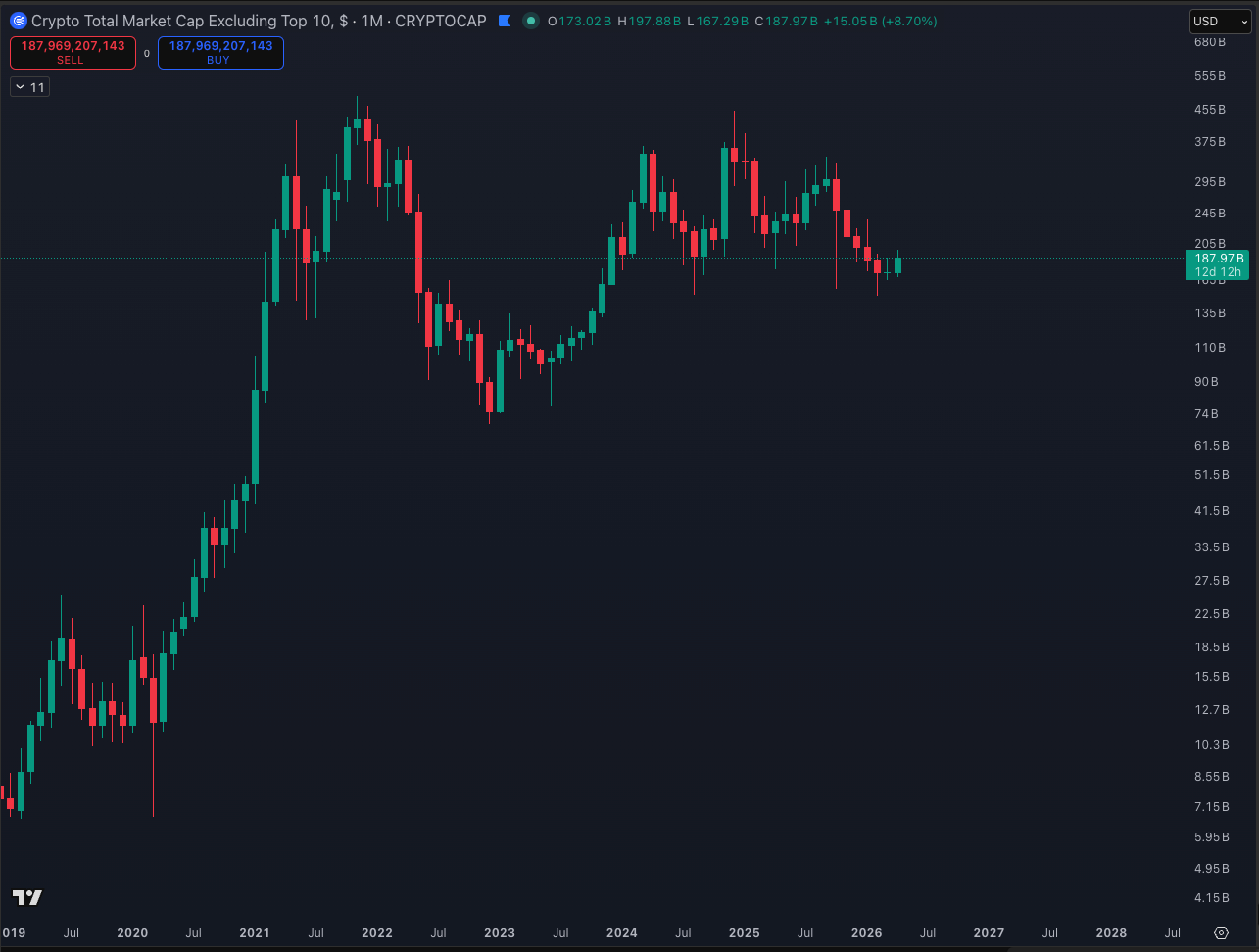 Broad alt indices such as OTHERS or TOTAL3 can help you judge whether strength is spreading across the market. These charts strip out Bitcoin, or Bitcoin and Ethereum, to focus more directly on altcoin participation.